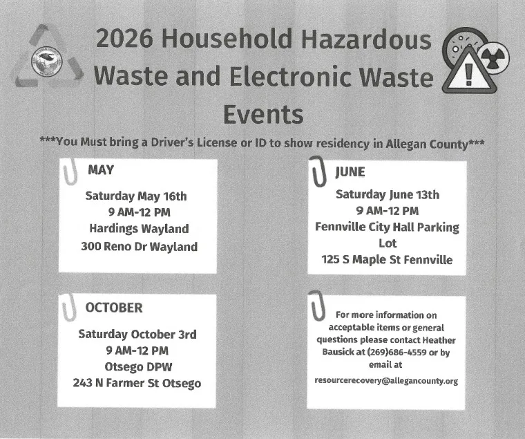 2026 Hazardous Waste and Electronic Waste EventsBack to NewsNewsPosted by:Martin TownshipPublished onMarch 30, 2026